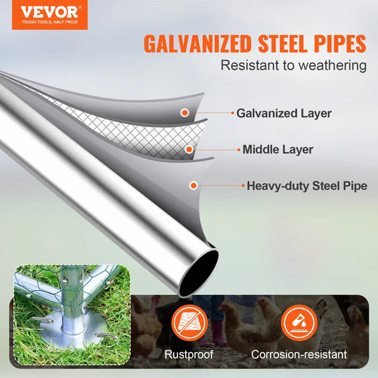 VEVOR Large Metal Chicken Coop, 9.8X12.9X6.5 Ft Walk in Chicken Run for Yard with Waterproof Cover, Doom Roof Hen House with Security Lock for Outdoor and Backyard, Farm, Duck Rabbit Cage Poultry Pen